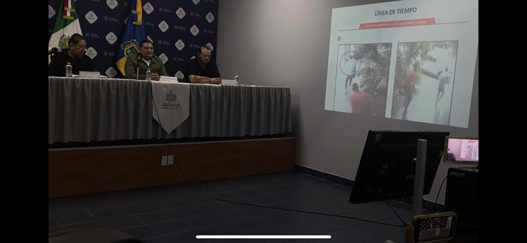 El Fiscal General, Luis Joaquín Méndez Ruíz, presentó fotogramas extraídos de los videos captados por las cámaras de seguridad en las que se aprecia el desarrollo de la agresión “es una agresión totalmente diseñada, orquestada, de acuerdo con los avances que tenemos, se confirma esa línea que se esta trabajando, que es el crimen organizado el que está detrás de la ejecución de Salvador, por la manera en cómo se llevaron a cabo los hechos”.