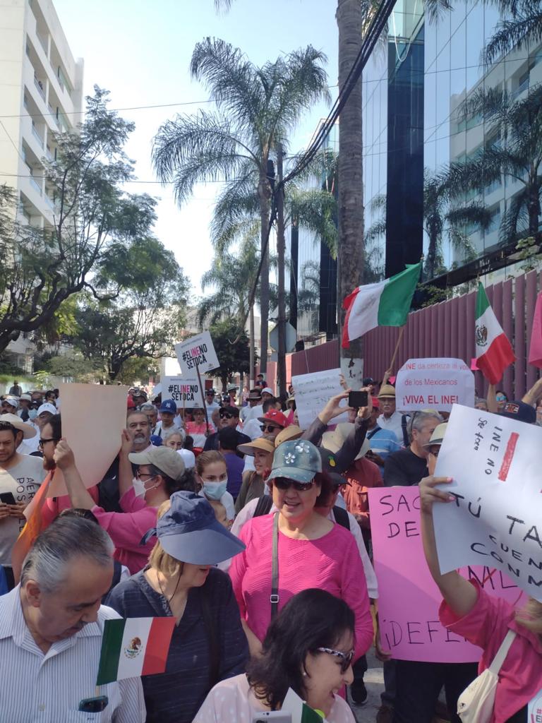 De acuerdo con información de la Coordinación Municipal de Protección Civil y Bomberos Guadalajara y de organizadores en Jalisco, a la manifestación en la Junta Local del INE acudieron al menos 10 mil personas.