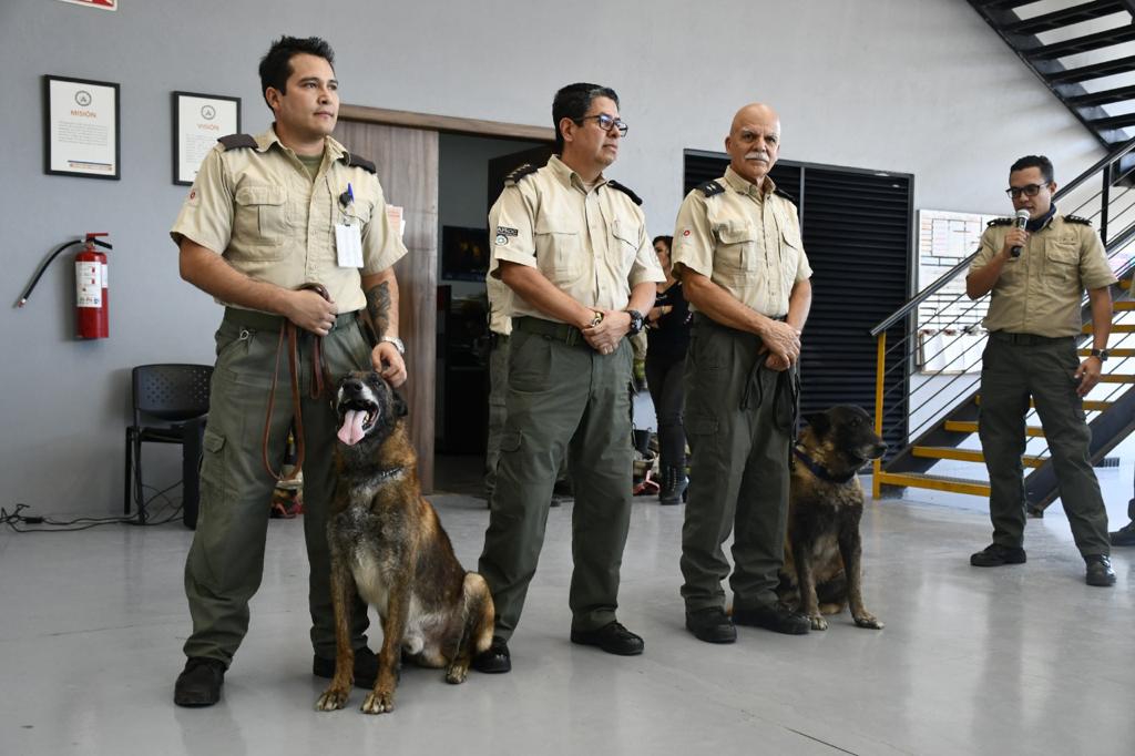 14 de Noviembre de 2022.- Se realizó una significativa despedida a los oficiales caninos “Bongo” y “Cónsul”, quienes formaron parte del escuadrón canino de rescate de la Unidad Estatal de Protección Civil y Bomberos de Jalisco.