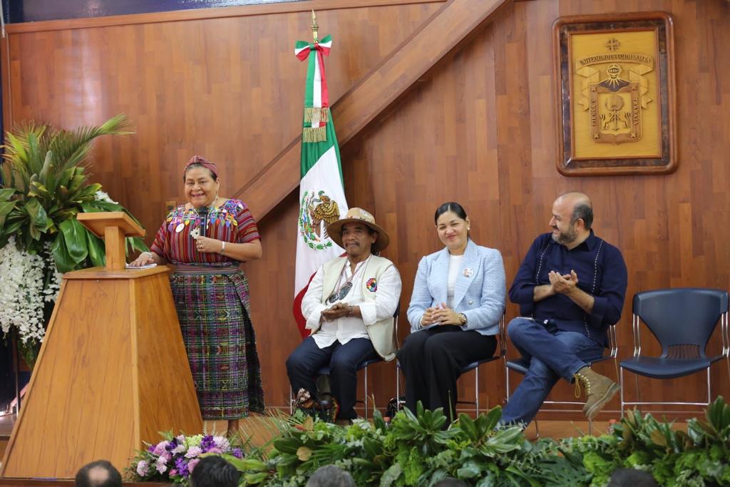 La embajadora de buena voluntad de la Organización de las Naciones Unidas para la Educación, la Ciencia y la Cultura (Unesco) visitó Jalisco y dictó una conferencia sobre derecho indígena