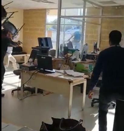 El detenido, de nombre Tomás Alberto ‘N’, es acusado de robo calificado y homicidio en grado de tentativa, se levantó con el objeto en las manos, y amagaba a quien se le cruzara al paso, también tomó una silla y con ella avanzó hasta un ventanal para romper el cristal de las instalaciones.