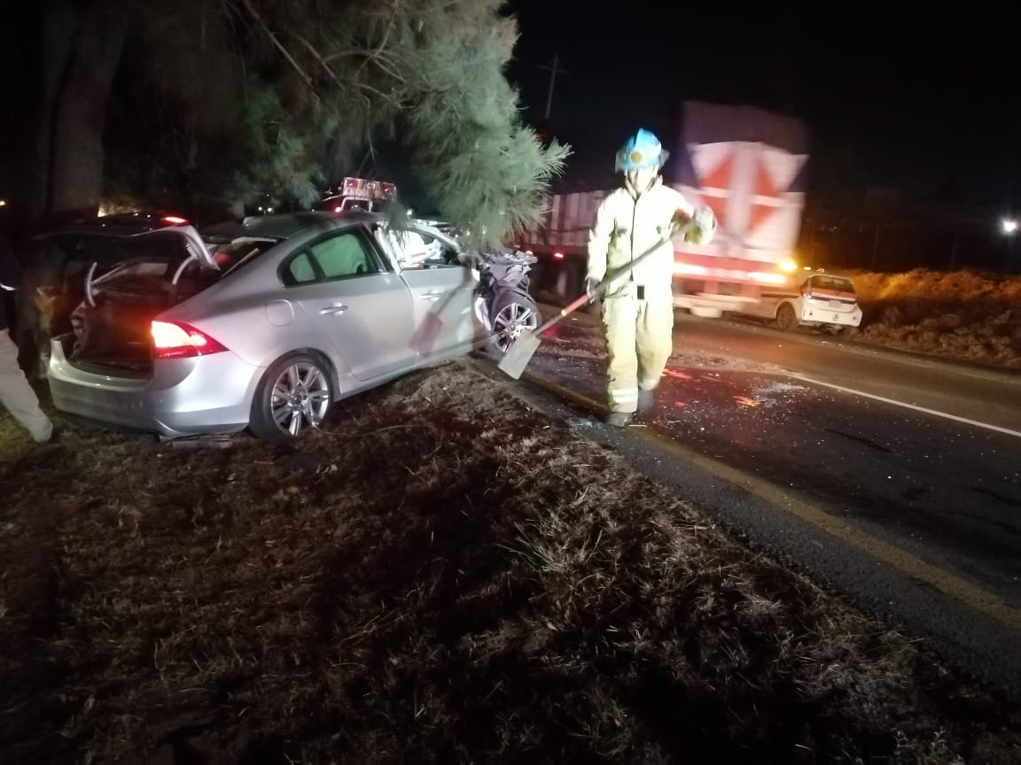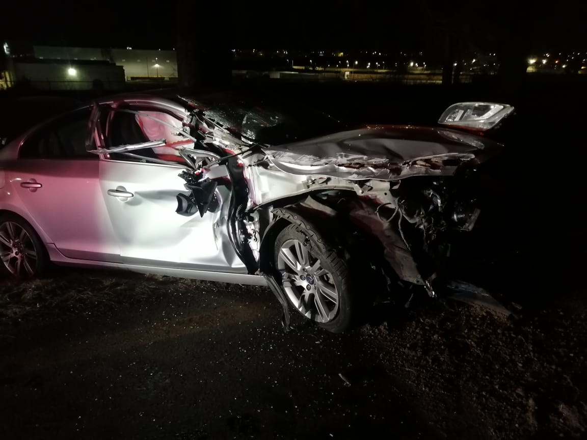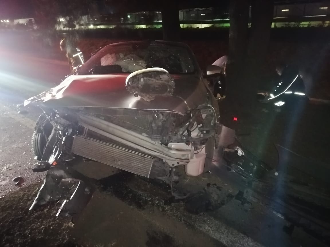 24 de noviembre de 2022.- Un vehículo de lujo, marca Volvo, se impactó contra un arbol.