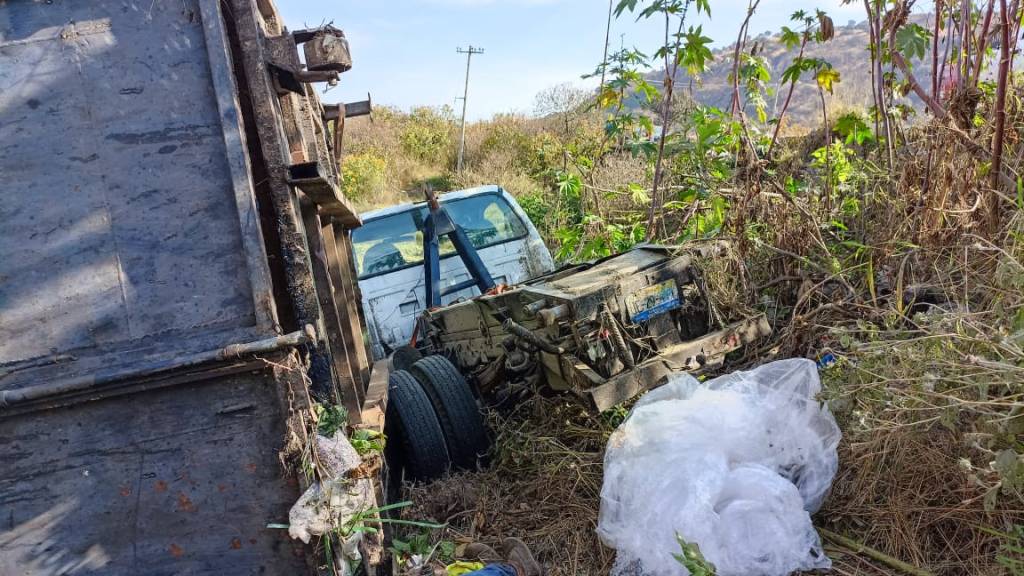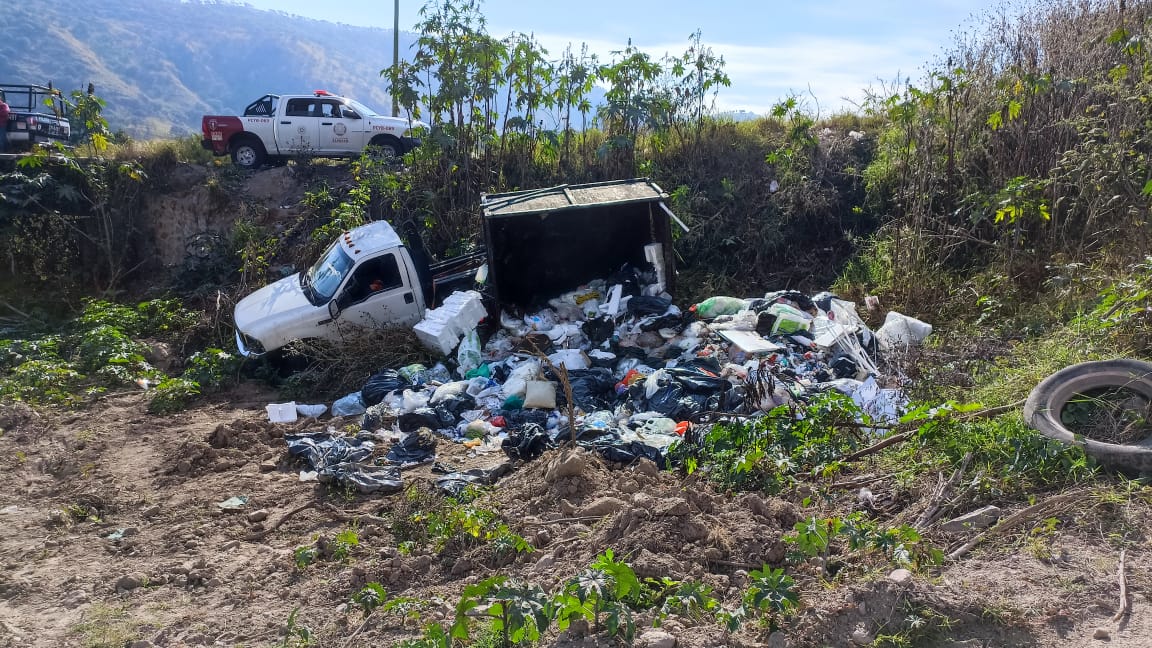 23 de Noviembre de 2022.- El vehículo terminó sobre la carretera a Colotlán, justo en la entrada al relleno sanitario de Picachos, en Zapopan.