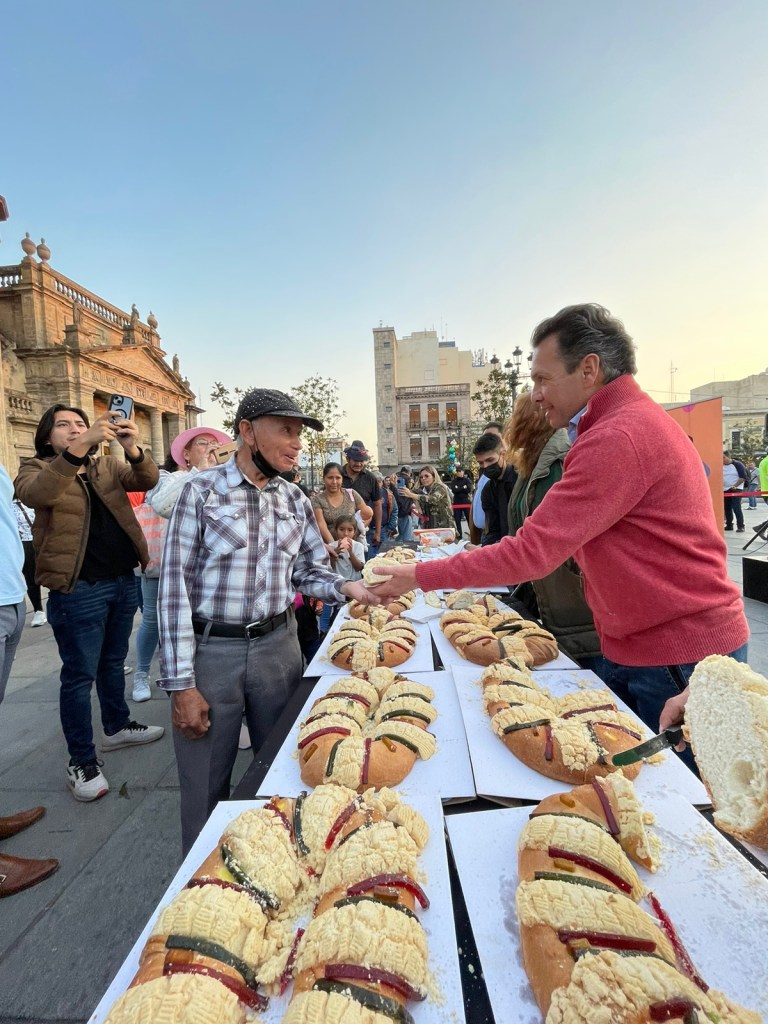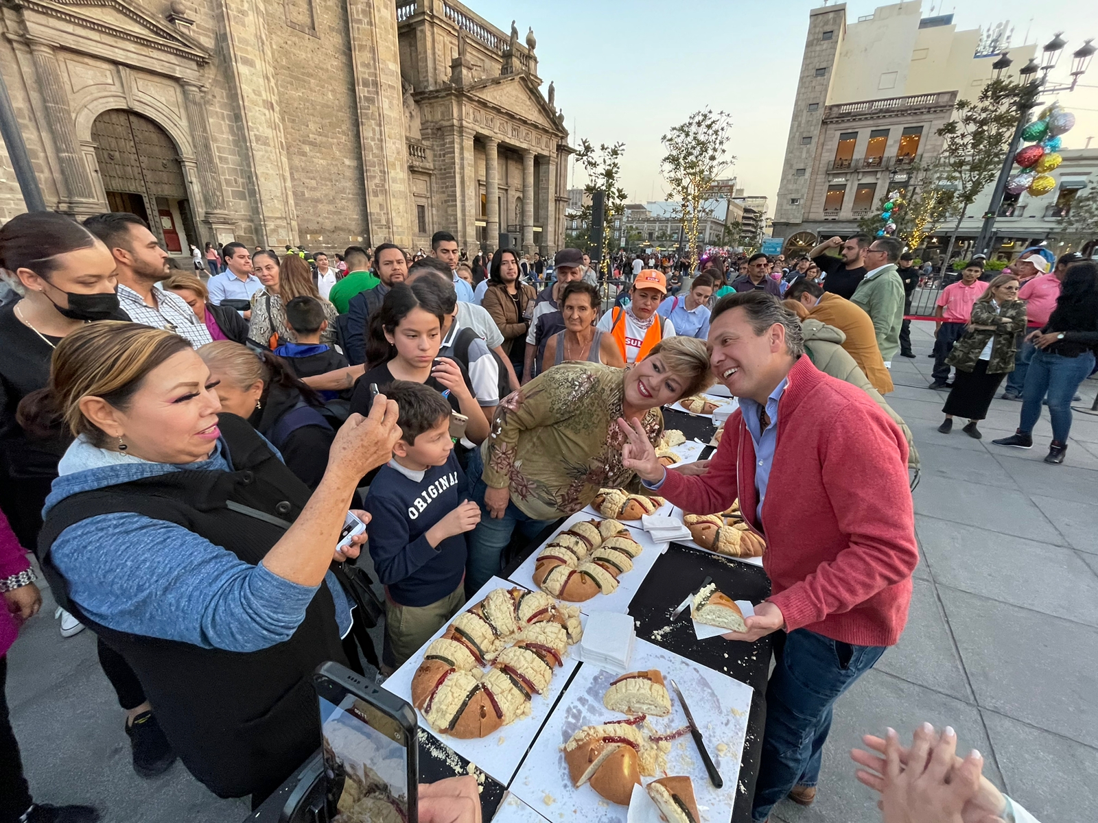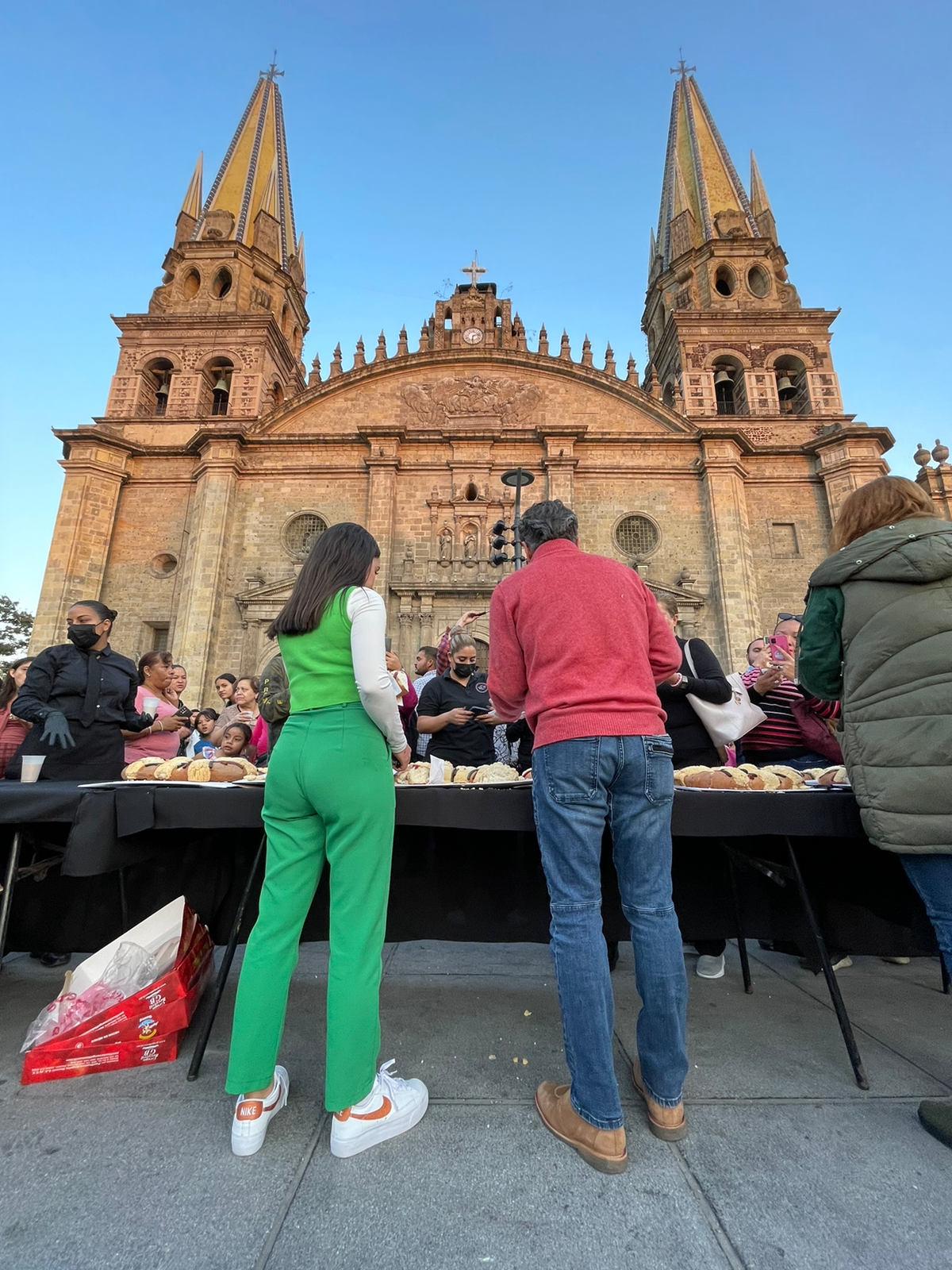 06 de Enero de 2023.- En el festejo del Día de Reyes, que se celebra el 6 de enero en nuestro país, el Gobierno de Guadalajara ofreció rosca y chocolate caliente de manera gratuita a los tapatíos, al rededor de diez mil personas se dieron cita esta tarde en el Centro Histórico de la ciudad.