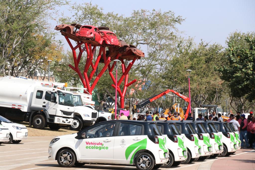 De 175 vehículos adquiridos por el Gobierno Municipal, 102 se entregaron a la ya mencionada coordinación con el fin de mejorar la operatividad de los Servicios Públicos Municipales. Entre las unidades se encuentran camiones recolectores de basura, camiones de volteo, camionetas, camiones tipo cisterna, remolques, grúas, minicargadores, retroexcavadora y autos tipo sedán, por mencionar algunos.