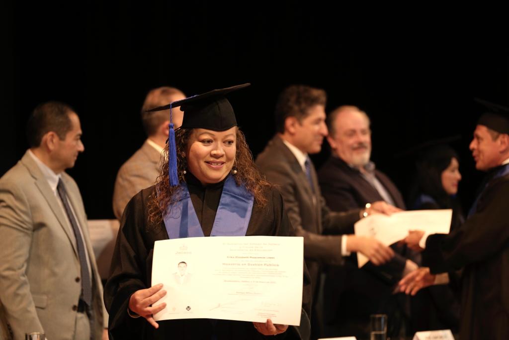 22 de Enero de 2023.- Con el objetivo de ofrecer una educación de calidad pertinente, eficaz, eficiente, equitativa y de impacto, y de esta manera colaborar con el fortalecimiento del capital humano como principal patrimonio de Jalisco, haciendo énfasis en la capacitación y la educación vinculada, este día la Secretaría de Educación de Jalisco (SE) entregó constancias de culminación y aprobación a la primera generación de y funcionarios públicos que cursó la Maestría en Gestión Pública, así como reconocimientos a quienes concluyeron el diplomado en Gestión Pública y Participación Ciudadana y la asignatura y taller en Gestión del Talento Humano.