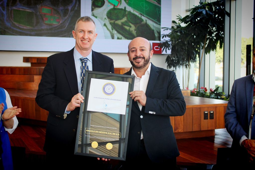 El Distintivo fue recibido por parte de Don Watson, Presidente Senior de Oracle y Erik Peterson, Director de la planta en Guadalajara.