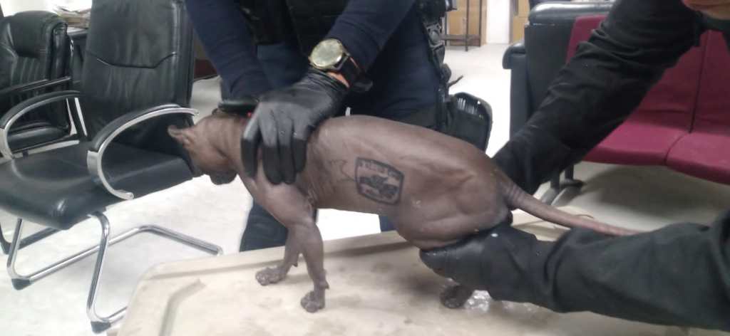 La Secretaría de Seguridad Pública del Estado (SSPE), informó que el animal, cuya raza tiene como característica particular su carencia de pelo en el cuerpo, fue encontrado mientras realizaban un operativo al interior del centro penitenciario, para detectar objetos prohibidos.