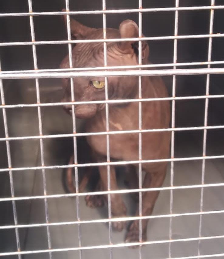 Es de la raza “esfinge”, también conocida como «egipcio» y fue detectado mientras deambulaba por los módulos y pasillos de la prisión
