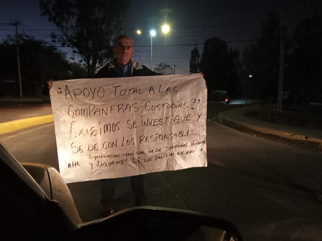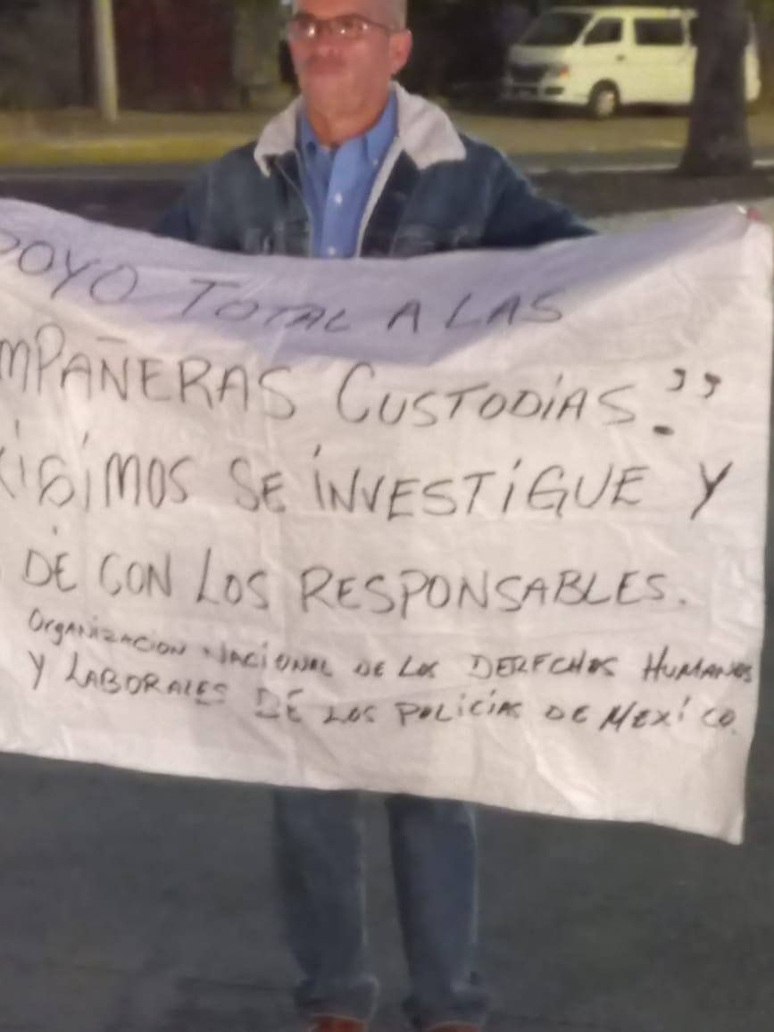 El extrabajador de la Policía Estatal, de manera recurrente protesta debido a su despido, y hace acusaciones diversas, todas infundadas.
