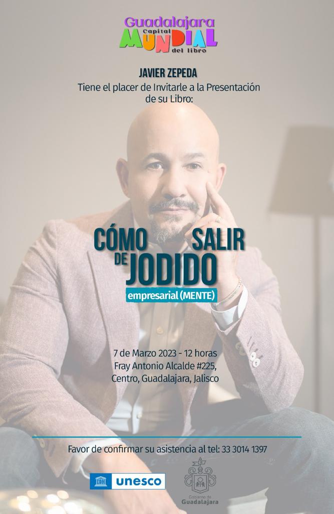 28 de Febrero de 2023.- El próximo 7 de marzo presentará su último material editorial, titulado “Cómo Salir de Jodido Empresarial(mente)”, en Paseo Fray Antonio Alcalde 225, como parte de los eventos de Guadalajara, Capital Mundial del Libro.