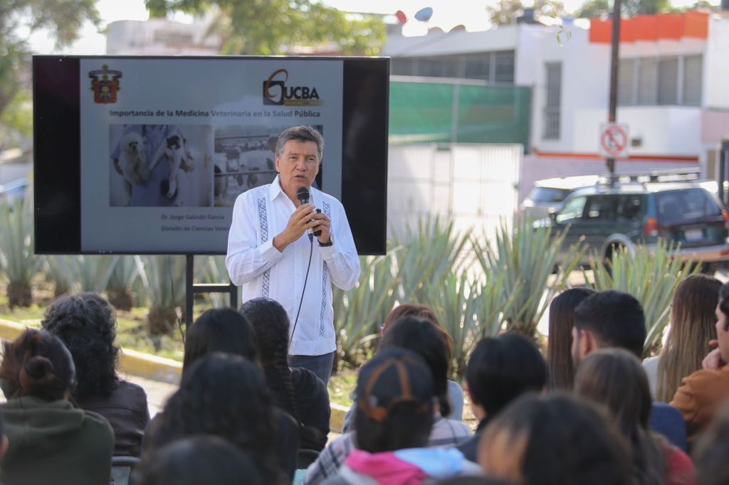 Fueron alrededor de 150 estudiantes del Centro Universitario de Ciencias Biológicas y Agropecuarias (CUCBA) quienes recibieron esta clase, dada por el Director de la División de Ciencias Veterinarias del CUCBA, doctor Jorge Galindo García, miembro del Sistema Nacional de Investigadores nivel I.
