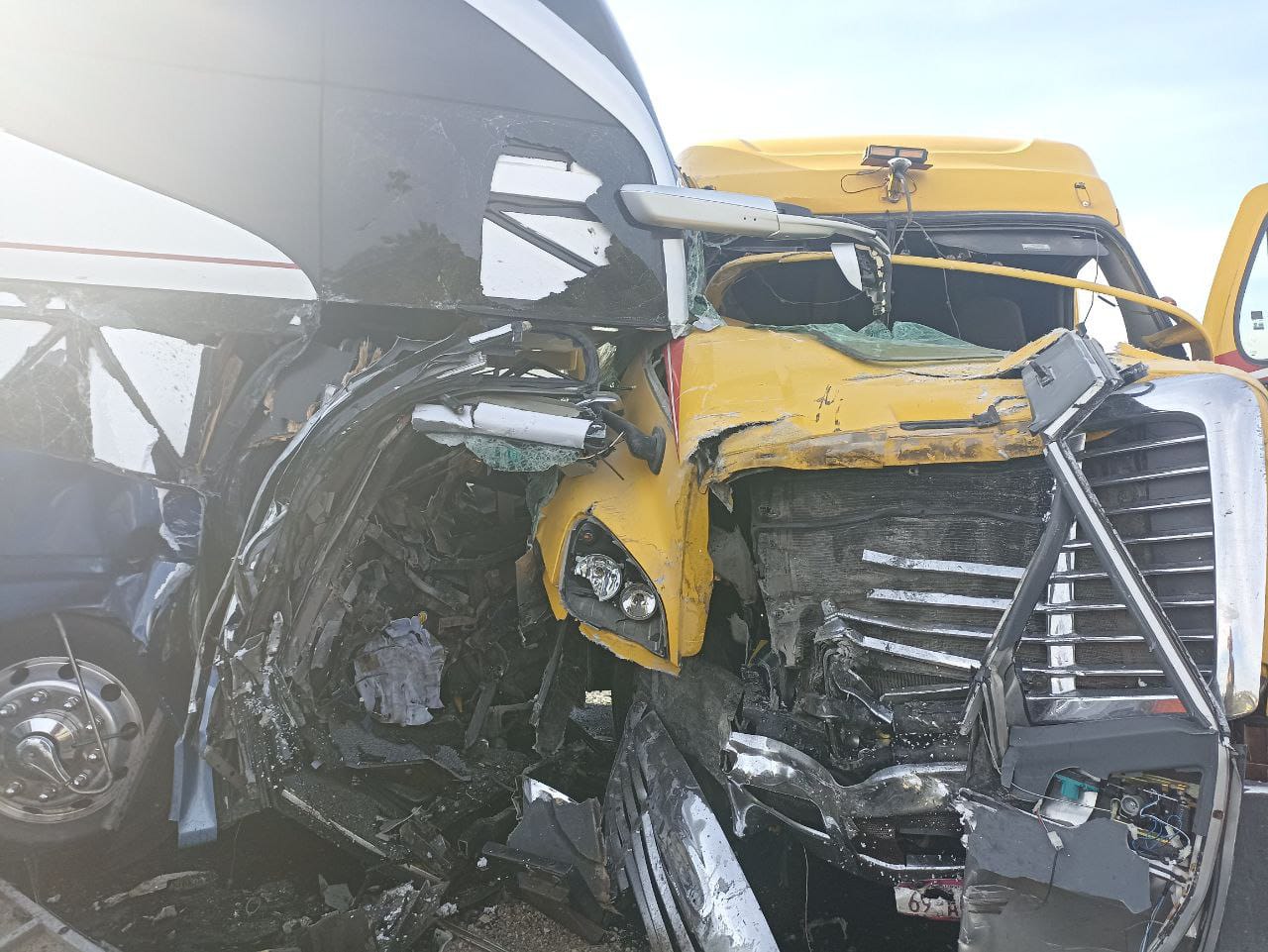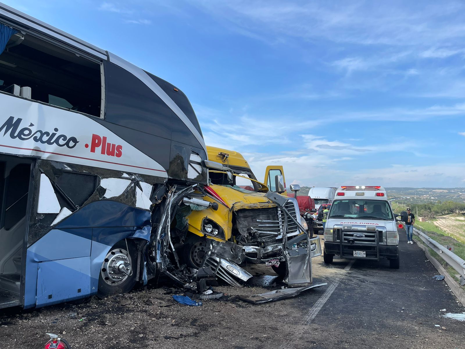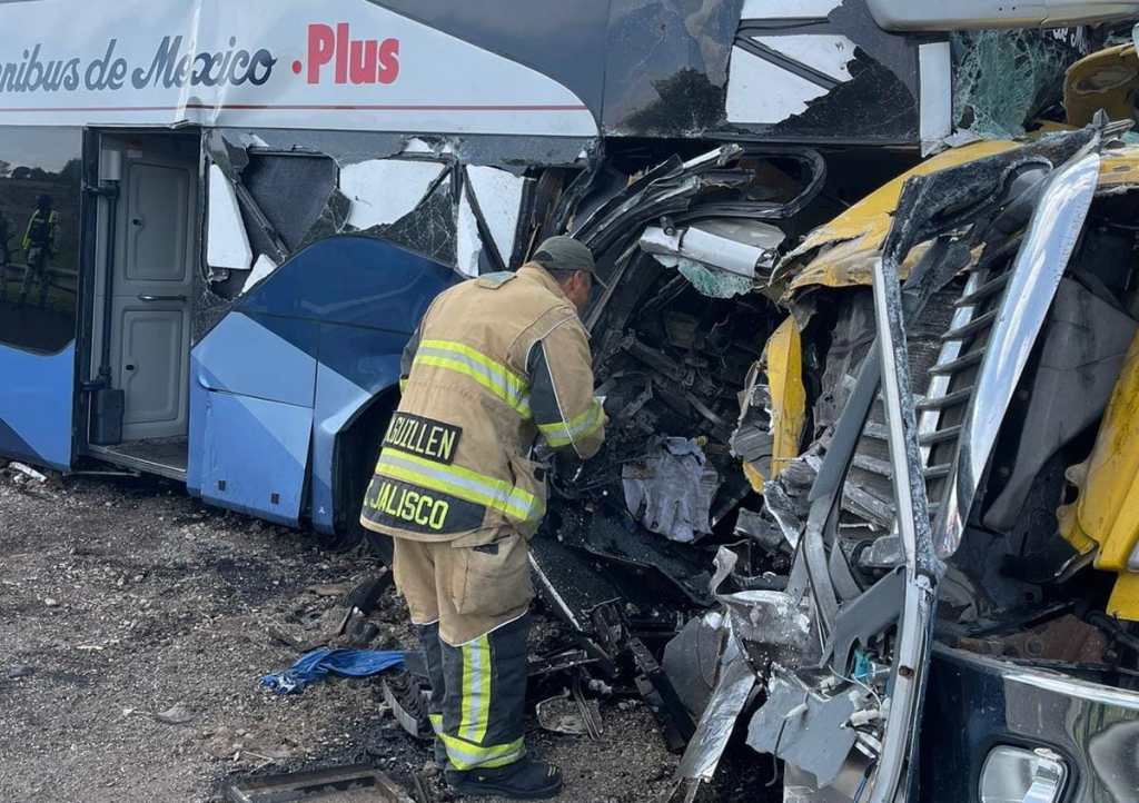 25 de Julio de 2023.- Un camión de pasajeros de la línea Ómnibus de México que cubría la ruta Monterrey- San Juan de los Lagos y un vehículo de carga de doble plataforma, chocaron de frente en la región Altos Norte de Jalisco.