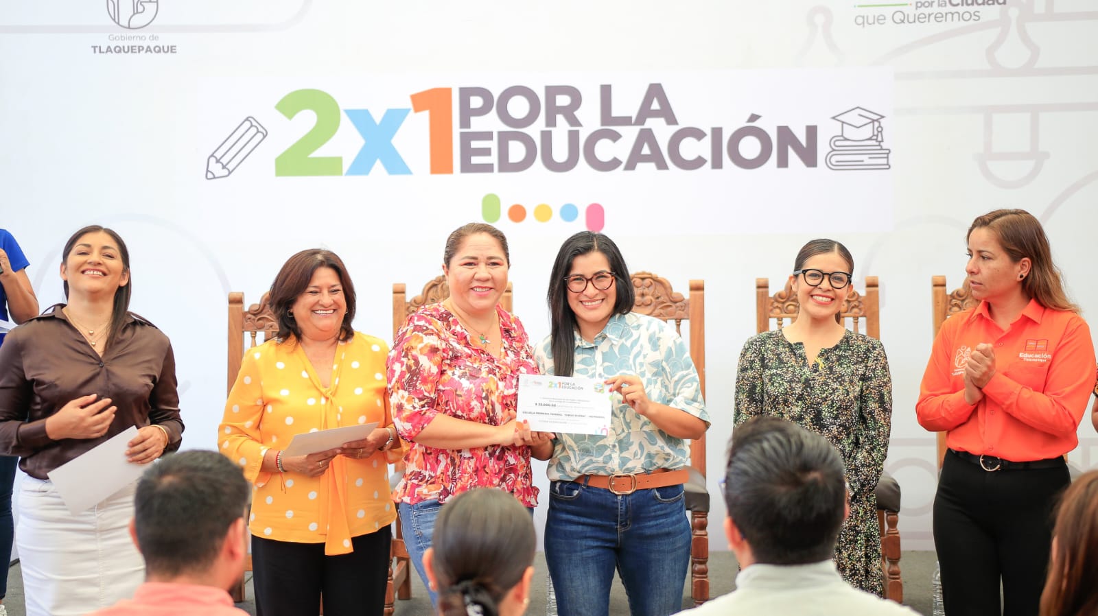 2 de Agosto de 2023.- A través del programa 2×1 por la educación, la Presidenta Municipal de San Pedro Tlaquepaque, Citlalli Amaya, entregó a los directivos y maestros de 55 escuelas de educación básica del municipio, un apoyo económico que les servirá para mejorar su infraestructura, y contar con el equipamiento, material didáctico y tecnológico necesario, para beneficiar a 11 mil 200 alumnos y alumnas.