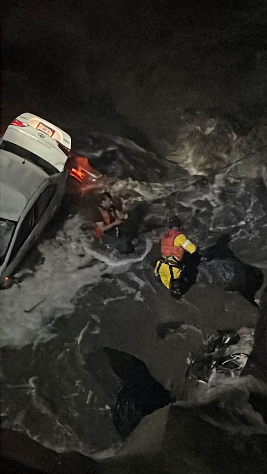 Elementos de Protección Civil y Bomberos, lograron rescatar a una persona de uno de los automotores, sin embargo otro hombre que iba a bordo de un vehículo fue arrastrado por la corriente.