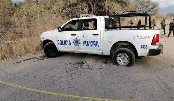 2 de Septiembre de 2023.- Lo que se reportó inicialmente como un enfrentamiento entre sujetos armados y policías, resultó ser un ataque contra el presidente municipal de Teocaltiche, en el que murieron dos policías.