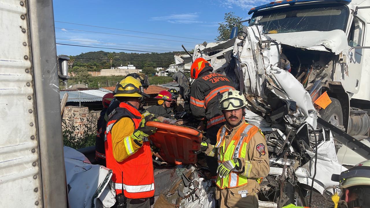 Según los reportes el hecho se registró la tarde de este martes cuando un tráiler hizo alto total, otro tráiler se quedó sin frenos impactandose en el primero y arrastrando a una camioneta tipo Springs debido al impacto, la camioneta quedó aplastada debajo de la pesada unidad.