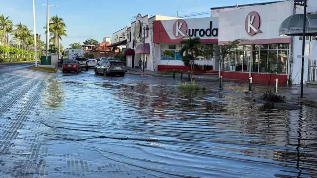 “el agua está subiendo los niveles, ha estado dejando personas encerradas, algunos negocios y vehículos afectados, y el reporte es que el agua está llegando hasta la Avenida Medina Ascencio, desde la API hasta prácticamente el malecón. Los invitamos a mantenerse informados; estamos trabajando con autoridades municipales para ayudar a la población que se vea afectada de alguna manera”.