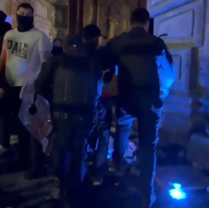 Luego los policías salieron a detener a personas agresivas, hasta el cierre de la edición se aseguró a al menos 20 individuos con granadas de humo, y objetos punzocortantes y contundentes. Algunos se reconocen originarios del estado de Michoacán.