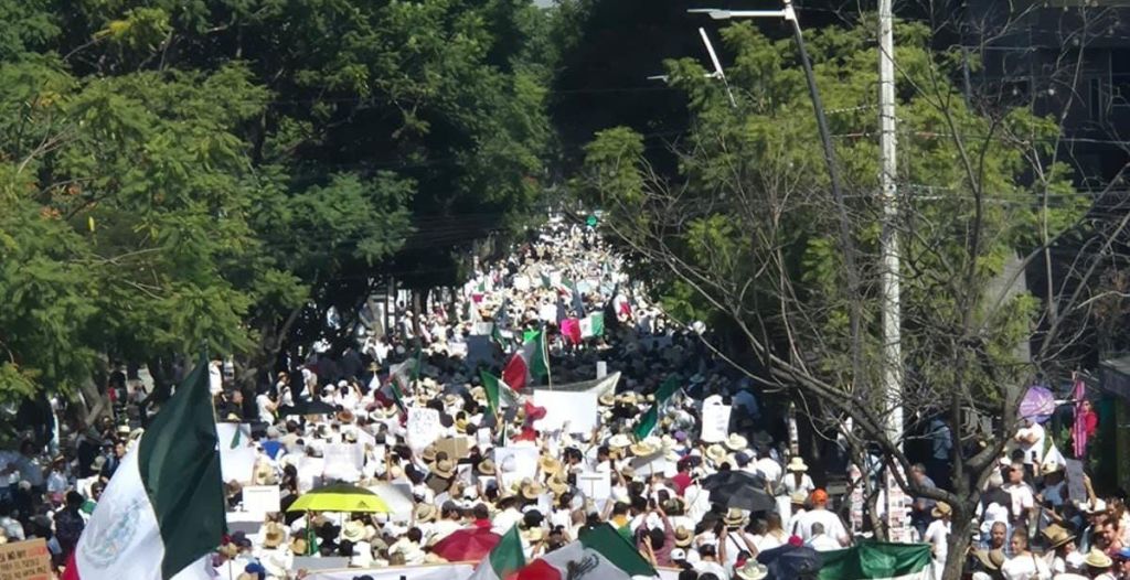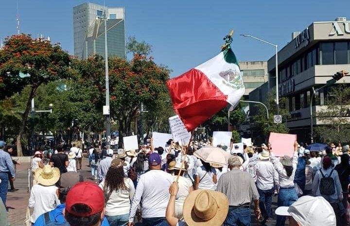 Luego el contingente partió al Palacio de Gobierno en el Centro Histórico de Guadalajara, donde los manifestantes culparon al gobierno federal de la inseguridad y de haber convertido al país en un narco estado.